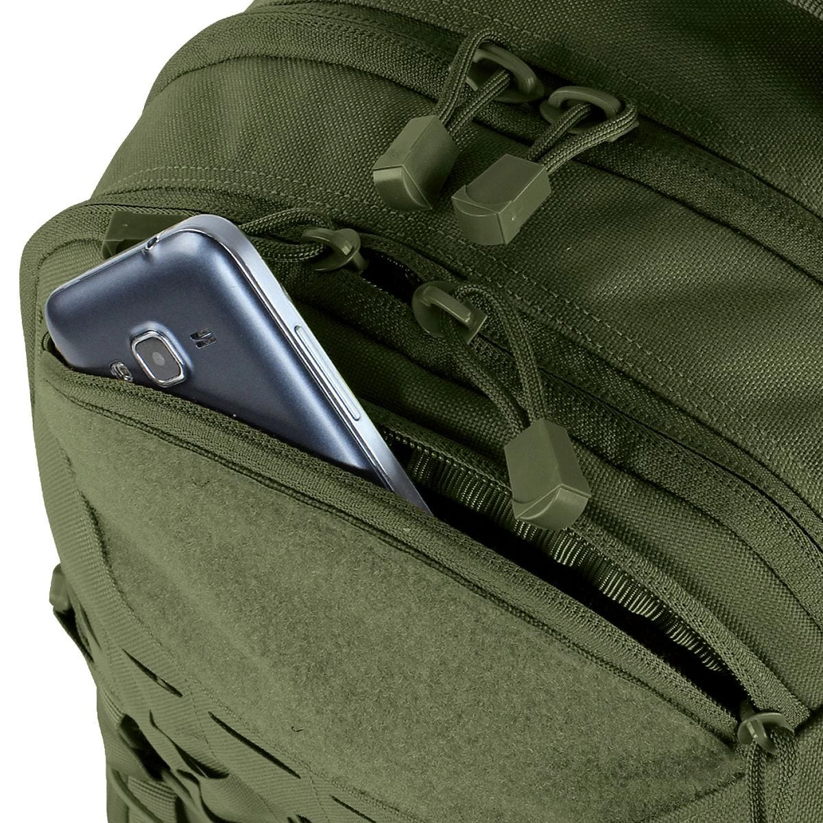 - Elastic cord on the front to tie down loose equipment